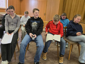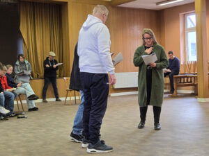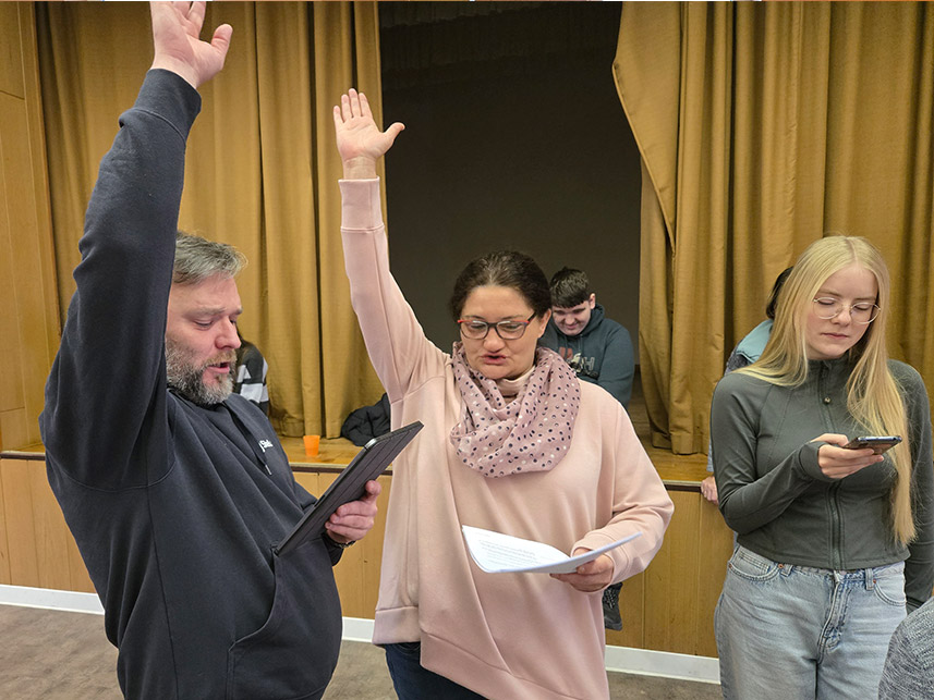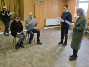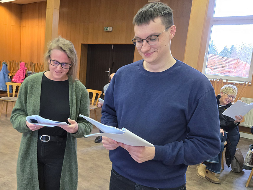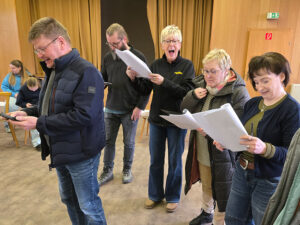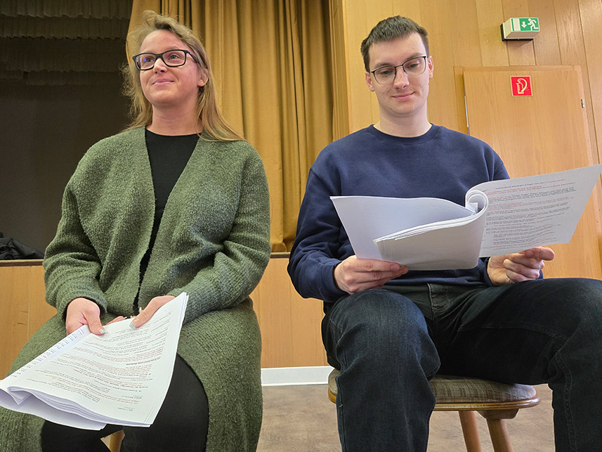Wir organisieren die mehreren Proben und halten Kontakt zu unseren Freunden des Vereins, die beim Stück mitspielen.